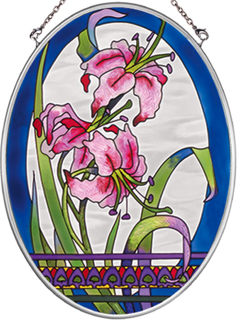 Home > Amia AMIA Glass 7911 Pink Lilies Medium Oval Suncatcher Lily Gift