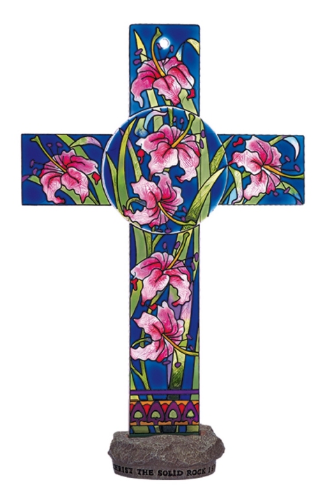 Home > Amia AMIA Glass Studios 8836 Pink Lilies Inspirational Cross Lily