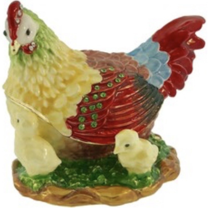 Home > Kubla Crafts Bejeweled Enamel Kubla Crafts Bejeweled Enamel 3495B Hen and Chicks Box Bird - Chicken Hen Rooster